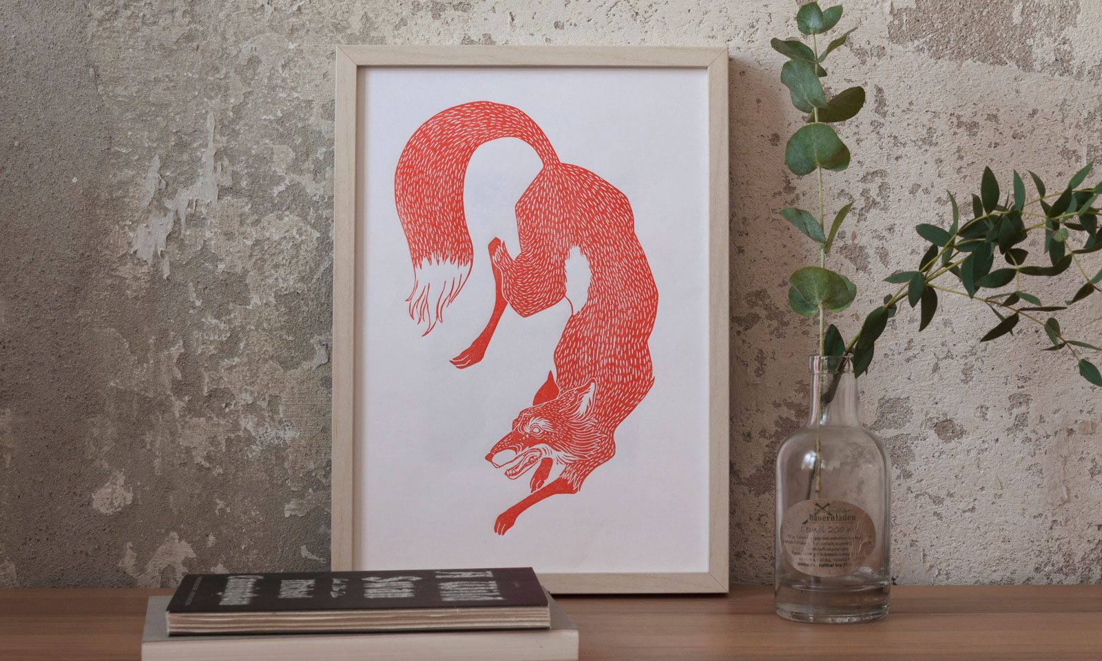 Als freiberufliche Kommunikationsdesignerin wollte ich neben der Auftragsarbeit immer gerne was Eigenes machen. Etwas Handgefertigtes, bei dem ich mich ausprobieren kann. In der Ausbildung und später im Studium hatte ich die Gelegenheit, unterschiedliche traditionelle Drucktechniken zu erlernen und dabei gemerkt, dass mich dieser künstlerisch und handwerkliche Arbeitsprozess am meisten erfüllt. Also habe ich wieder mit Linolschnitt begonnen. Zunächst nur für mich als Ausgleich zur Arbeit am Rechner. Es gab aber viel positives Feedback, woraufhin ich mich dazu entschloss ein Label zu entwickeln und meine Drucke online zu verkaufen – das war 2015.