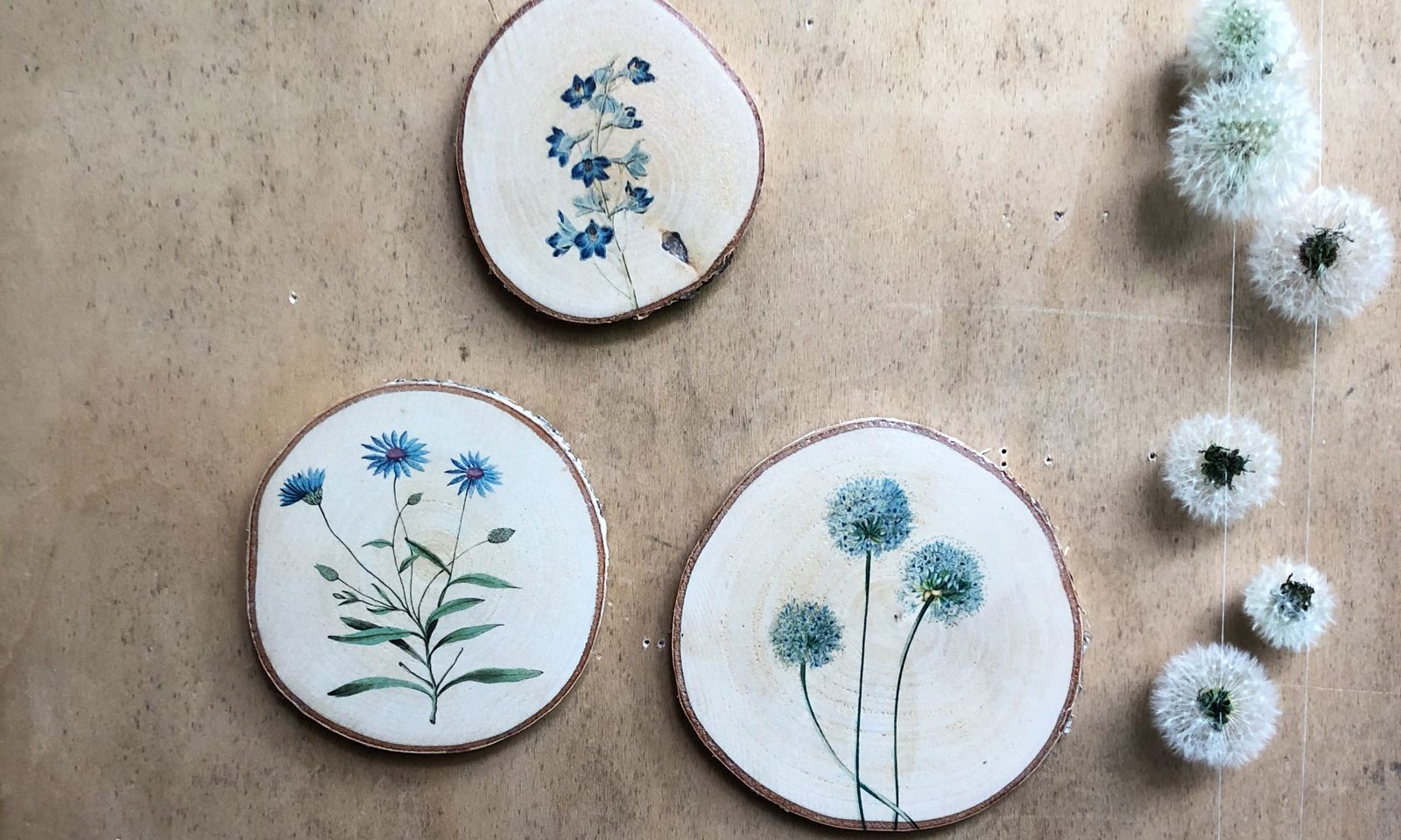 Auf einem Flohmarkt habe ich einen Künstler entdeckt, der Fotografie auf Holz belichtet hat. Die Kombination aus Foto und Holz hat es mir so angetan, dass ich geschaut habe, wie ich das auch mit Farbe hinbekomme. Dafür habe ich kurzerhand meinen Job in einer PR Agentur an den Nagel gehängt, mich in einer Tischlerei eingemietet und so lange rumprobiert, bis ich die sogenannte „Serviettentechnik“ so weit entwickelt hatte, dass die Ergebnisse so werden, wie sie heute sind. Ich habe Möbel bearbeitet und sogenanntes upcycling betrieben, Schmuck hergestellt und Wandschmuck kreiert. Und das alles unter dem Deckmantel madeva Holzliebe. Seit sieben Jahren arbeite ich nun als sogenannte Holzdesignerin mit Höhen und Tiefen, aber ein Ende ist nicht in Sicht!!