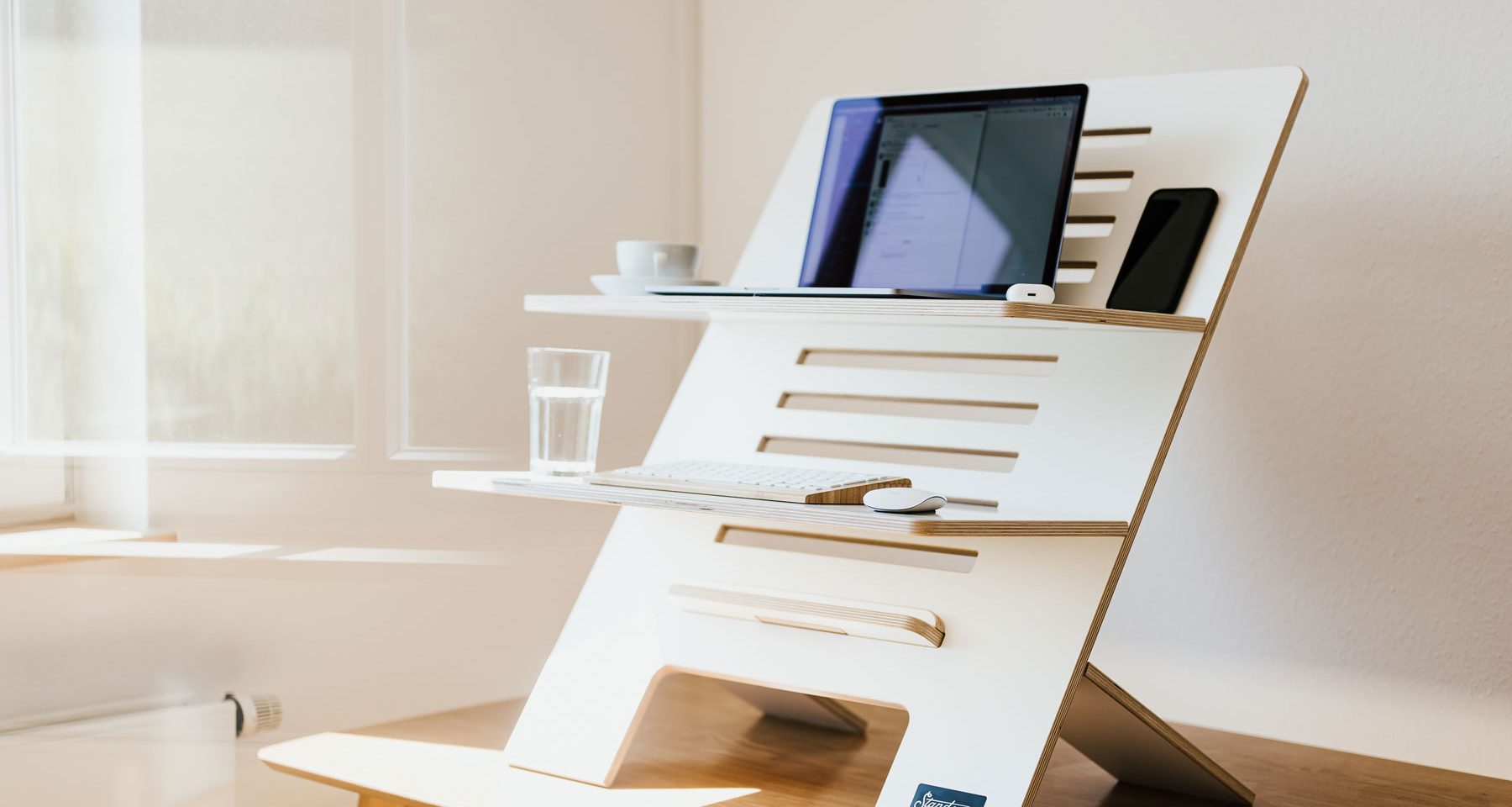 Die Idee ist ganz nebenbei entstanden. Wir wollten eigentlich nur einen Steh-Schreibtisch-Aufsteller für unsere Büro kaufen. Das war gar nicht so einfach, denn es gab nur eine kleine Auswahl und die vorhandenen Modelle waren uns zu teuer und ausschließlich aus Metall und Kunststoff gearbeitet. Also haben wir selbst angefangen zu tüfteln. Mitte 2017 sind wir dann mit unserem Online-Shop an den Start gegangen und wachsen seitdem stetig.