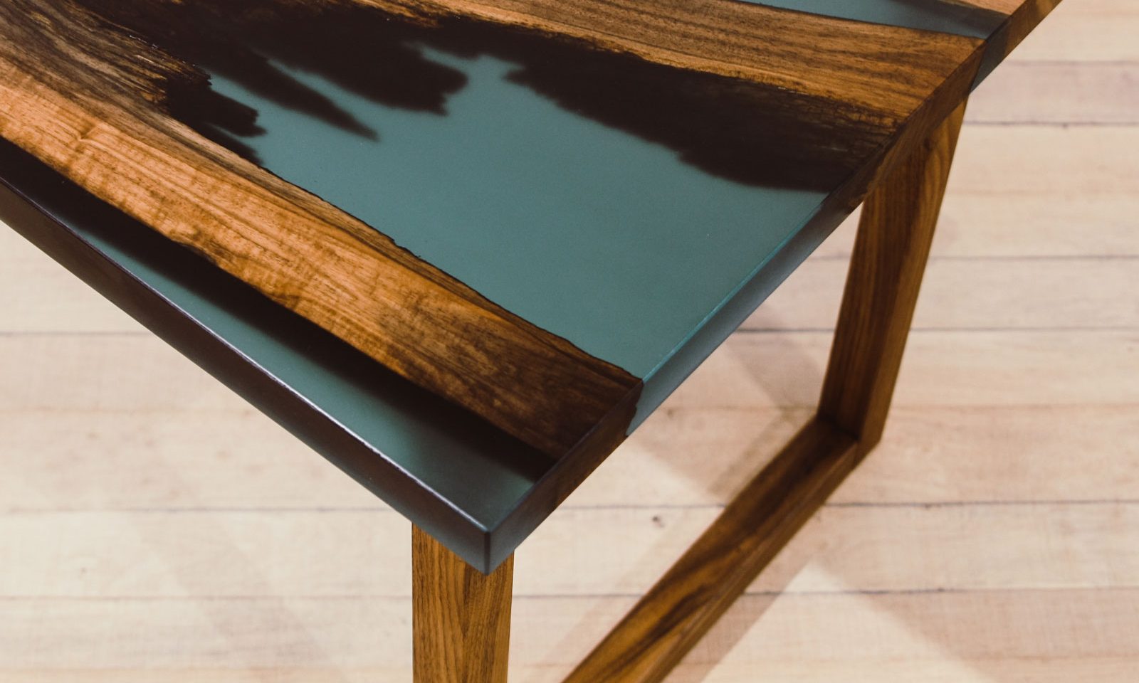 Wir arbeiten beide in einem Holzhandel im Großraum München. Täglich schneiden wir Stammware für Kunden zu. Dabei entstehen Abschnitte und oft werden die wunderschönsten Stellen weggeschnitten, da diese klassisch nicht verbaut oder gebraucht werden können. Die Verbindung aus Holz und Epoxidharz gibt uns die Möglichkeit die Ware im Ganzen und mit seinen natürlichen Formen und ›Fehlern‹ zu verbauen.