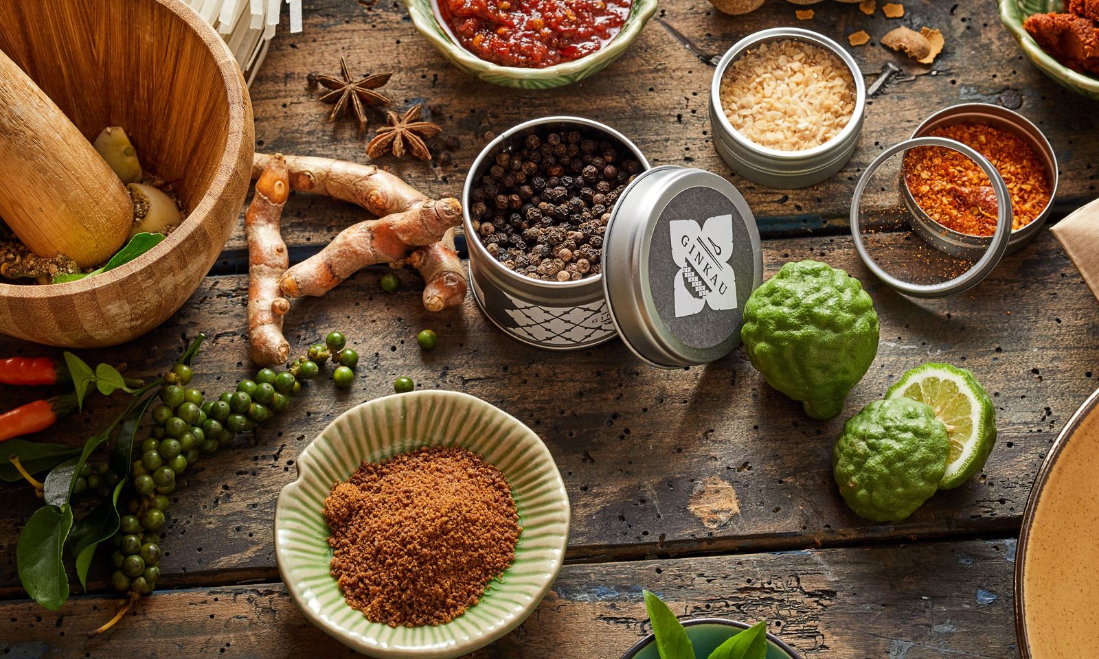 Mit unseren Kochboxen wollen wir unseren Kunden ein besonderes Koch- und Geschmackserlebnis verschaffen. Die Zubereitung der Gerichte erfolgt auf traditionelle Weise, so stellt der Kunde beispielsweise die Currypasten selber im Mörser her, muss aber nicht vorab eine Vielzahl an Gewürzen beschaffen — die liefert Ginkau. Auf handelsübliche Fertigpasten mit Konservierungsstoffen verzichten wir und das hat auch den positiven Nebeneffekt, dass die Schärfe der Gerichte selbst bestimmt werden kann. Auch sind die Zutaten nicht alle vorportioniert, es ist immer etwas mehr enthalten, um auf Wunsch nachwürzen zu können.