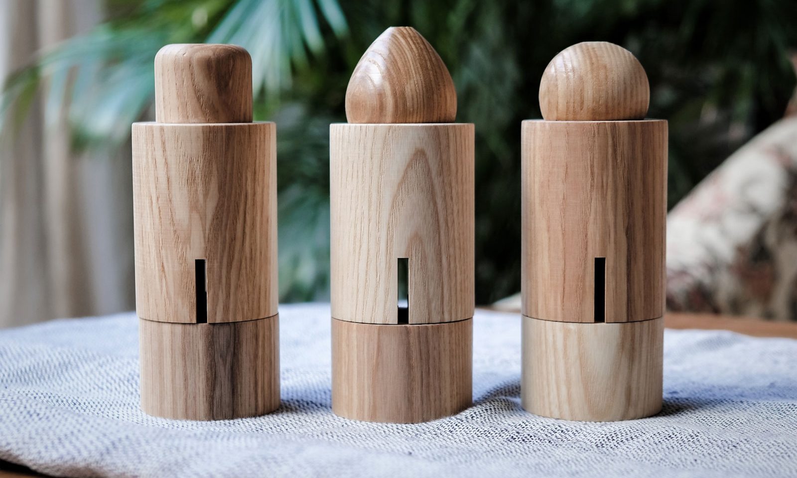 Unsere erste Kollektion haben wir mit puristischen Räucherfiguren gestartet, die sich mit ihren klaren und schlichten Formen in jedes Interieur einfügen. Sie werden in Traditionswerkstätten im Erzgebirge teils mit neuester CNC-Technologie und teils in aufwändiger Handarbeit hergestellt. Die Drechslermeister und Holzspielzeugmacher hier produzieren zum Teil in fünfter Generation beeindruckende Holzkunst. Für unsere Produkte verwenden wir regionale und FSC-zertifizierte Hölzer und polieren und ölen sie mit biologischem Hartwachsöl von Hand.