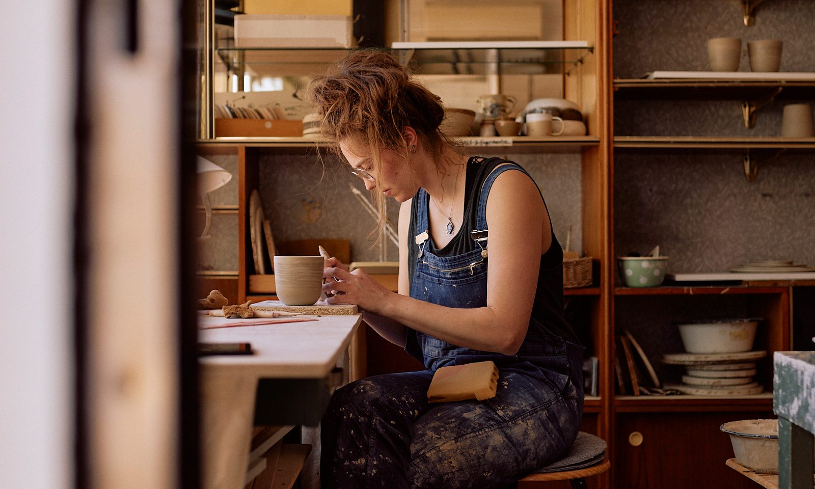 Ich arbeite seit 2014 mit Ton und habe mich in die Möglichkeiten die das Material bietet verliebt. Ich habe dann Kunst und Kunstgeschichte studiert und nebenher meine Werkstatt geführt. Und ehrlich gesagt habe ich mich in keinen Job, der auf dem Arbeitsmarkt zu finden ist, wiedergefunden. Als ich 2021 die Chance auf einen Gründerzuschuss bekam, habe ich mich getraut. Ich hätte es mir nicht erträumen können.